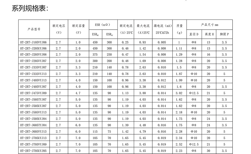 超級電容器 HT系列