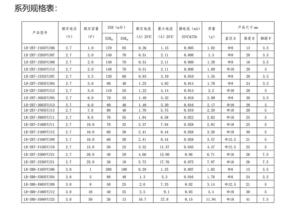 超級電容器 LR系列